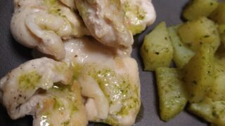 シンプルに食べる和えるだけ それだけで美味しい鶏肉を塩コショウで焼くだけ焼いたフライパンに残った鶏肉のうま味にバジルソースを加えてソースにして鶏肉にかけるそれだけじゃがいもメークインを小さく切って茹でるお湯を切ってすぐにバジルソースで和える...